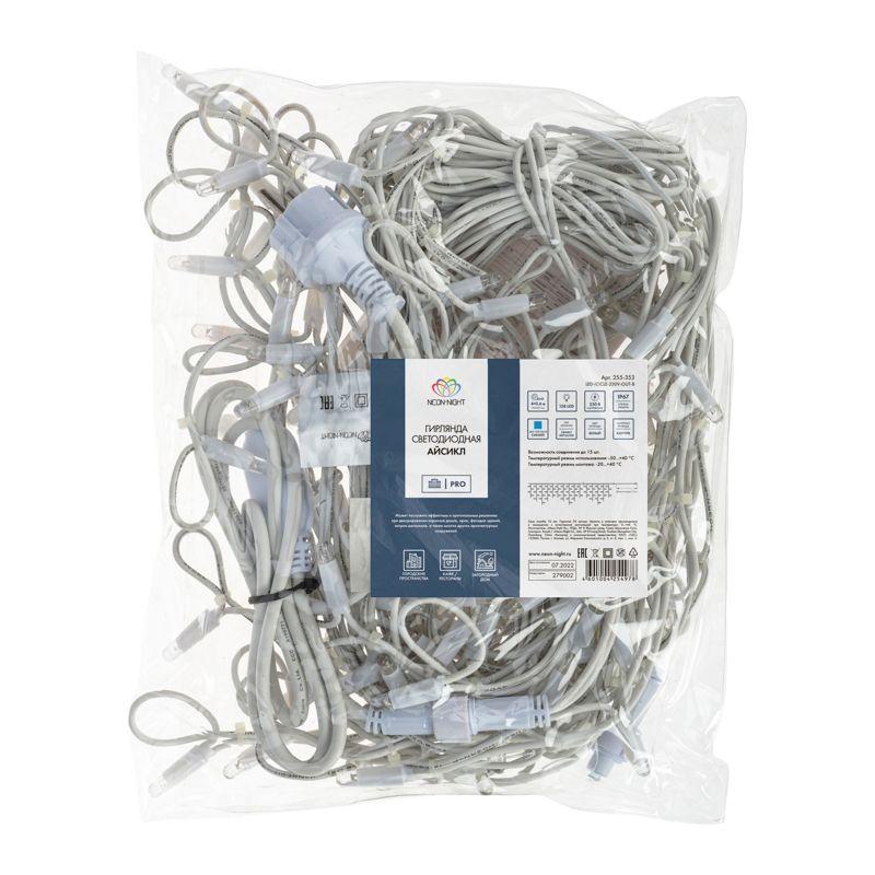 Гирлянда светодиодная "Айсикл" (бахрома) 4х0.6м 128LED син. 10Вт 230В IP67 эффект мерцания провод бел. каучук (нужен шнур питания 315-001) Neon-Night 255-353