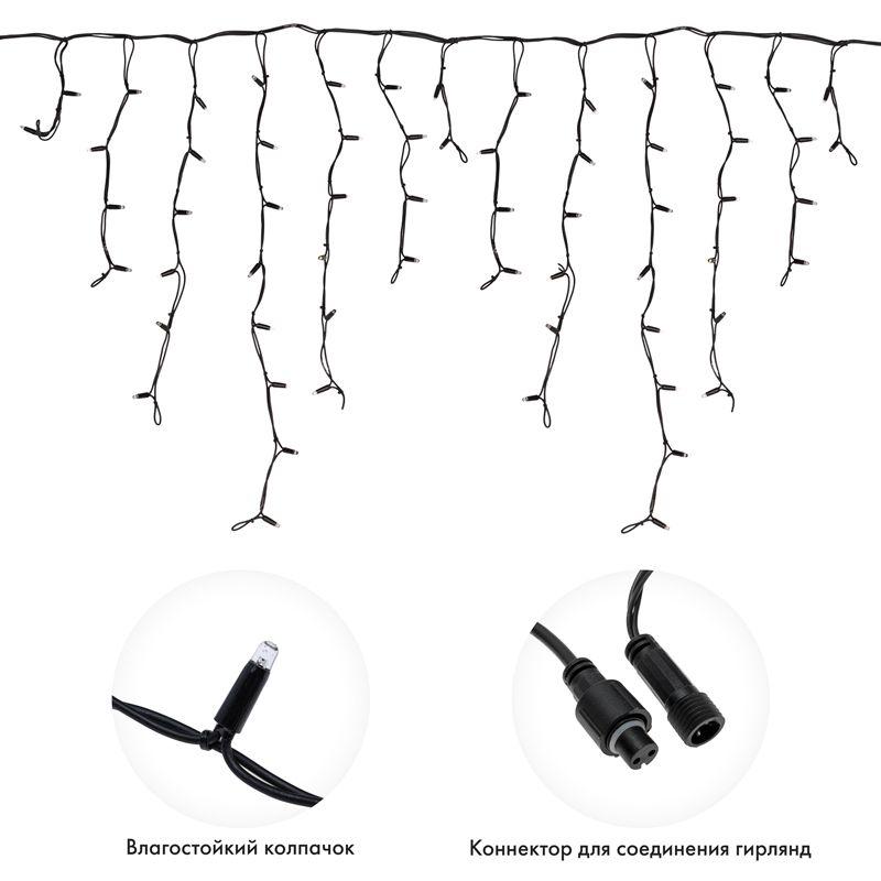 Гирлянда светодиодная "Айсикл" (бахрома) 5.6х0.9м 240LED син. 16Вт 230В IP67 провод каучук черн. Neon-Night 255-243