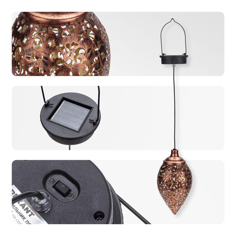 Светильник подвесной Фатих 3000К встроен. аккумулятор солнечная панель коллекция Стамбул Rexant 602-2402