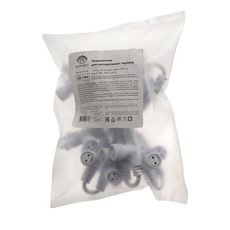 Разветвитель-шина для уличных гирлянд Professional (1 вход 20 выходов) бел. ПВХ Neon-Night 315-407