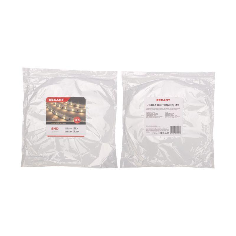 Лента светодиодная 12В SMD2835 14.4Вт/м 120 LED/м 3000К 8мм IP20 (уп.50м) Rexant 141-218