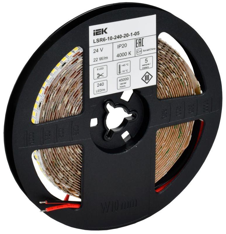 Лента светодиодная 2835-240LED 22Вт/м IP20 10мм 24В 4000К (уп.5м) IEK LSR6-10-240-20-1-05