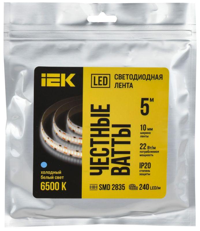 Лента светодиодная 2835-240LED 22Вт/м IP20 10мм 24В 6500К (уп.5м) IEK LSR6-2-240-20-1-05