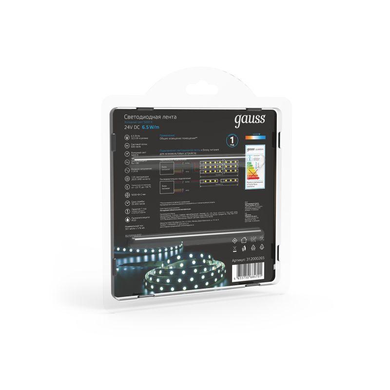 Лента светодиодная Black 2835/120-SMD 6.5Вт/м 5000К холод. бел. IP20 600лм/м 24В (блист.5м) GAUSS 312000265