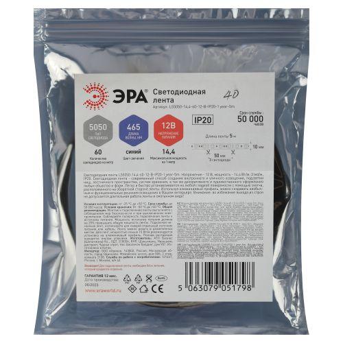 Лента светодиодная LS5050 -14.4-60-12-B-IP20-1 year-5m син. (уп.5м) Эра Б0059921