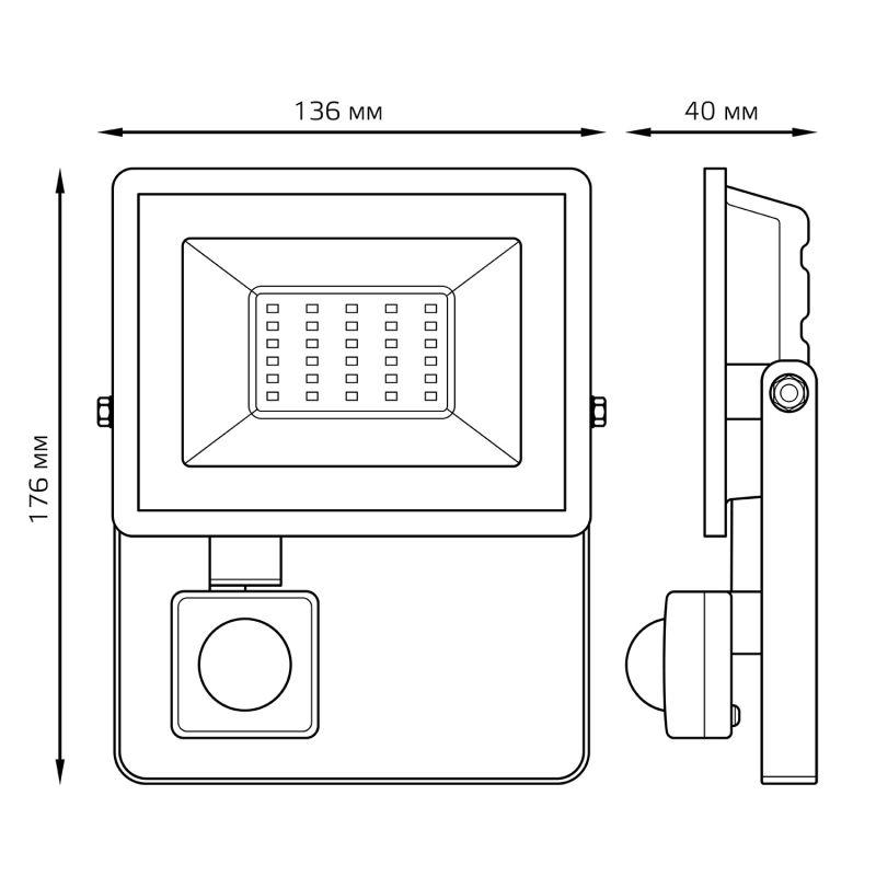 Прожектор светодиодный Elementary 30Вт 6500К IP65 2100лм 175-265В ДО с датчиком движения черн. GAUSS 628511330