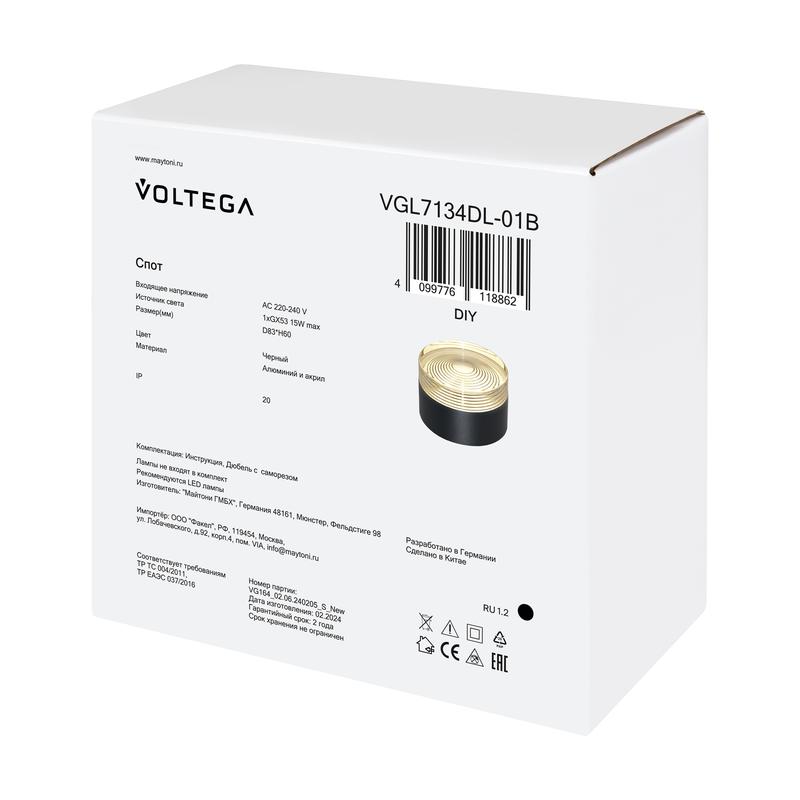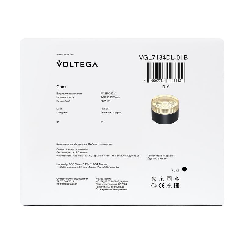 Спот Zoro GX53х1 15Вт IP20 Voltega VGL7134DL-01B