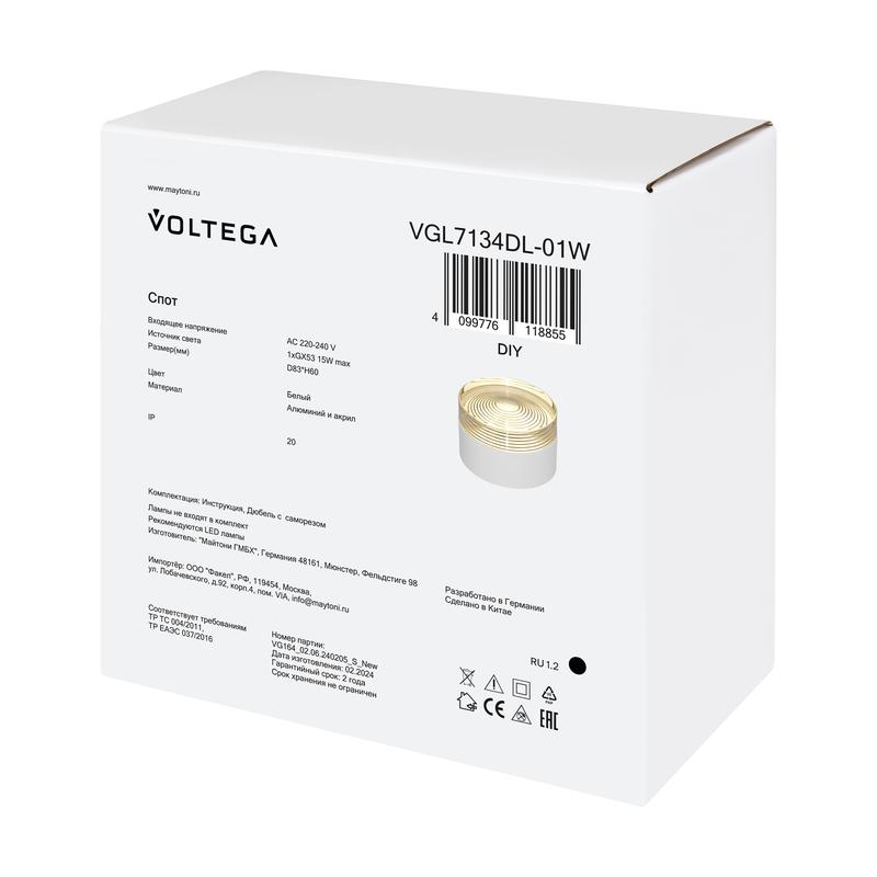Спот Zoro GX53х1 15Вт IP20 Voltega VGL7134DL-01W