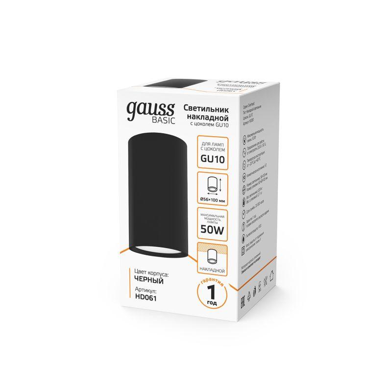 Светильник Basic накладной под лампу GU10 черн. GAUSS HD061