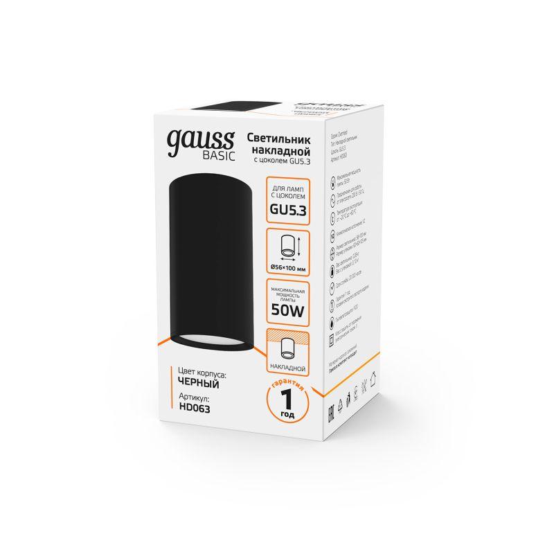Светильник Basic накладной под лампу GU5.3 черн. GAUSS HD063