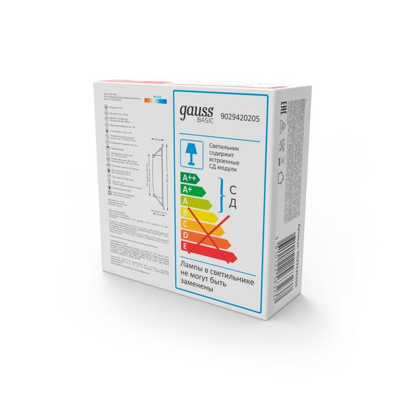 Светильник светодиодный Basic Downlight 5Вт 4000К IP20 300лм 210-240В 95х26 круг бел. GAUSS 9029420205