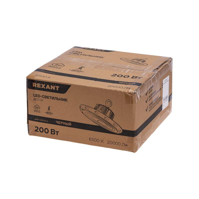 Светильник светодиодный ДСП 01 200Вт 6500К IP65 20000лм черн. для высоких пролетов Rexant 607-297