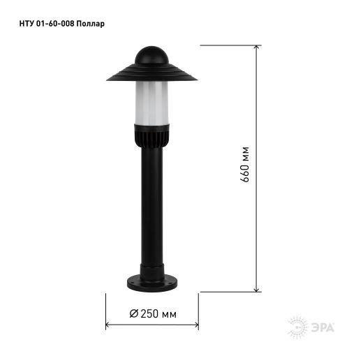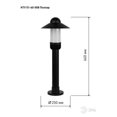 Светильник садово-парковый НТУ 01-60-008 Поллар IP54 E27 max60Вт h660мм напольный черн. ЭРА Б0057494