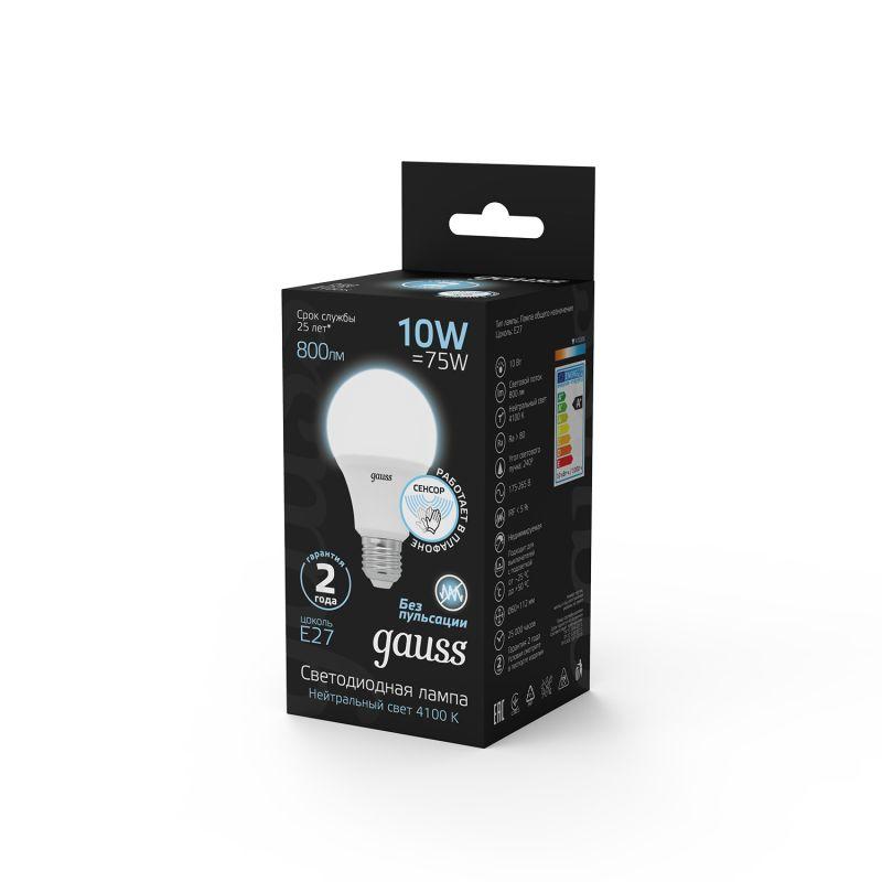 Лампа светодиодная Black 10Вт A60 грушевидная 4100К нейтр. бел. E27 800лм с датчиком движения GAUSS 102502210-M