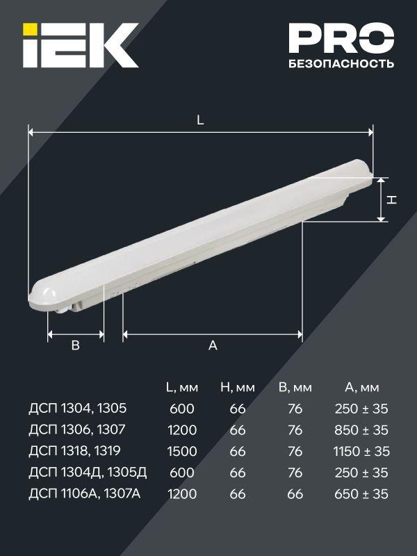 Светильник ДСП 1305 18Вт 6500К IP65 600мм сер. пластик IEK LDSP0-1305-18-6500-K01