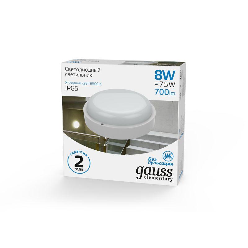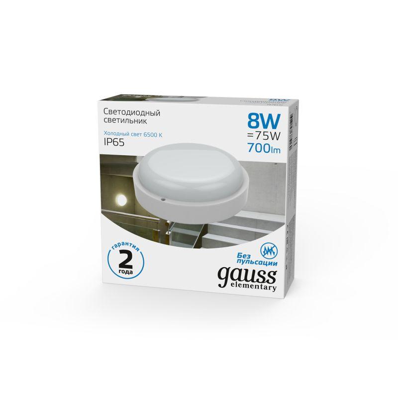 Светильник светодиодный Elementary 8Вт 6500К IP65 700лм d140х51мм ДБП круг настенно-потолочный GAUSS 126411308