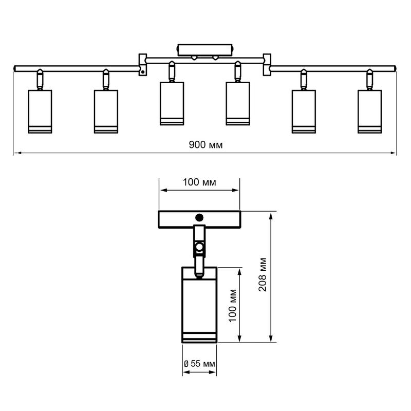 Светильник PCL-0306 6xGU10 IP20 230В BL настен./потолочн. декор. под лампу JazzWay 5066601