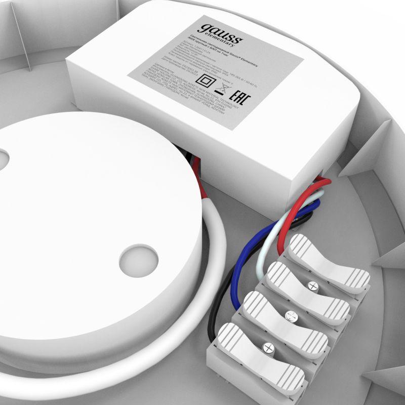 Светильник светодиодный Elementary 12Вт 6500К IP54 1080лм d205х65мм ДБП круг настенно-потолочный с БАП GAUSS 126411312A