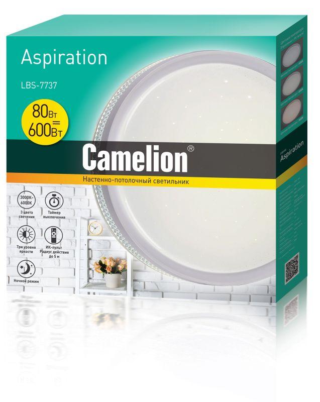 Светильник светодиодный LBS-7737 80Вт 3000-6000К 7800лм настенно-потолочный управляем. пульт бел. Camelion 14531
