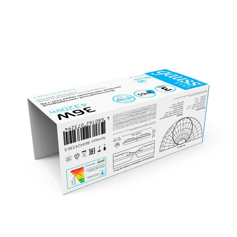 Светильник светодиодный ССП-176 EVO 1200х60х58 36Вт 4000К 4320лм IP65 175-265В сенсорный матов. и соед. в линию GAUSS 864424236-S