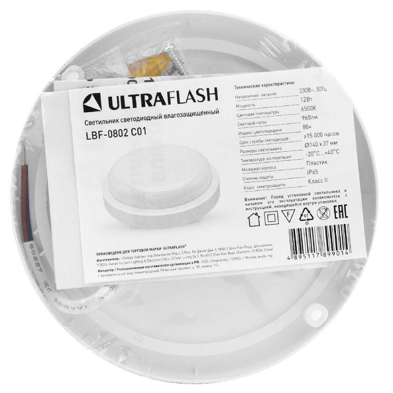 Светильник светодиодный ЖКХ 12Вт 6500К IP65 220В влагозащ. круг LBF-0802 C01 Ultraflash 15342