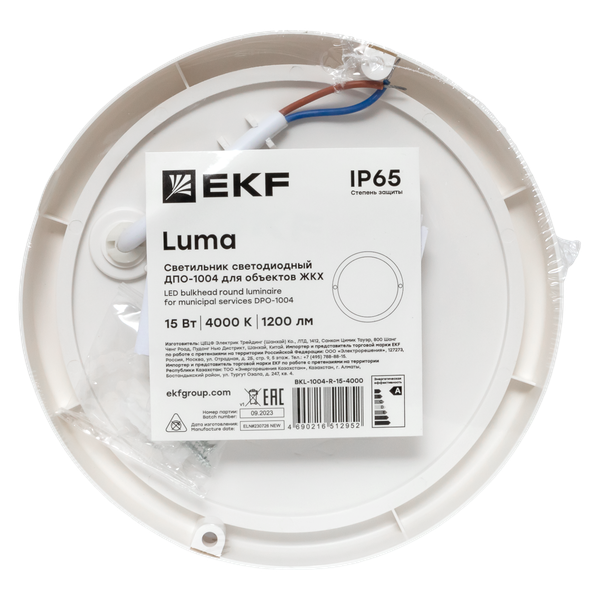 Светильник светодиодный ЖКХ ДПО-1004 15Вт 6500К IP65 круг LUMA EKF BKL-1004-R-15-6500