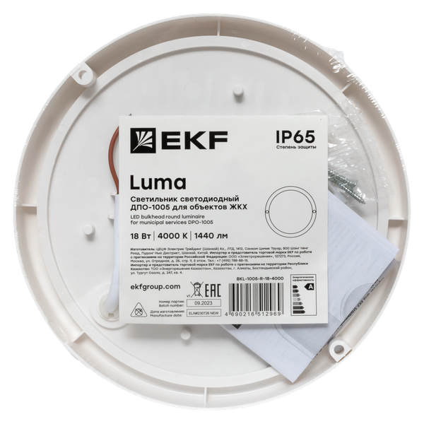 Светильник светодиодный ЖКХ ДПО-1005 18Вт 6500К IP65 круг LUMA EKF BKL-1005-R-18-6500