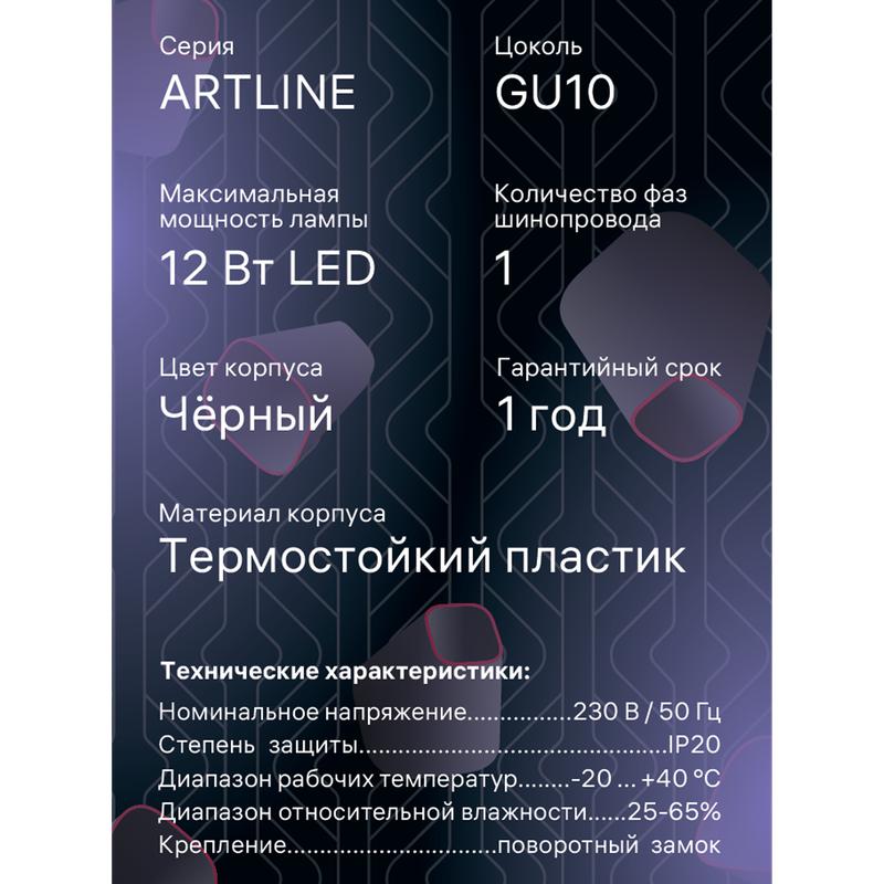 Светильник трековый ARTLINE поворотный 55х55х87мм GU10 220В пластик 4кв.м черн. Ritter 59870 5