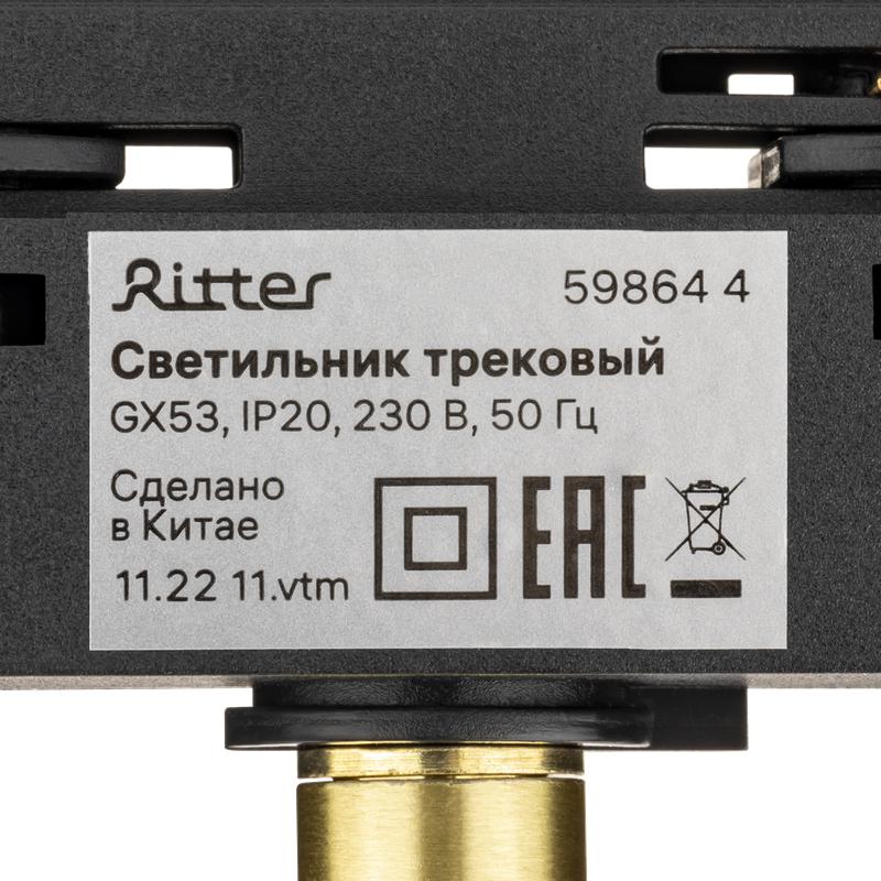 Светильник трековый ARTLINE поворотный 85х85х70мм GX53 230В алюм./пластик. 4кв.м зол. Ritter 59864 4