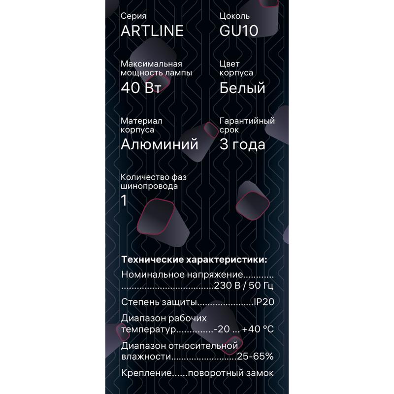 Светильник трековый подвес ARTLINE 55х55х100мм GU10 230В алюм. 2.6кв.м бел. Ritter 59927 6