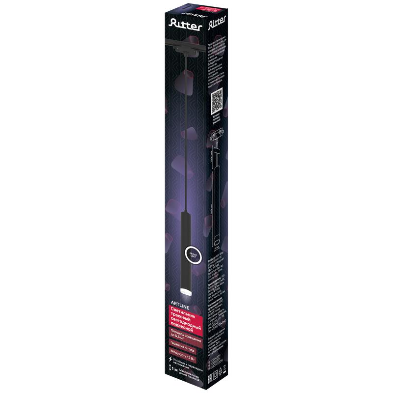 Светильник трековый подвес светодиодный ARTLINE 40х40х300мм 12Вт 840Лм 4000К 230В алюм./пластик. 5.5кв.м черн. Ritter 59709 8