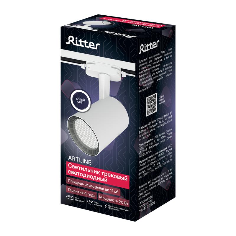 Светильник трековый светодиодный ARTLINE поворотный 75х75х115мм 20В 1700Лм 4000К 230В алюм. 9кв.м бел. Ritter 59733 3