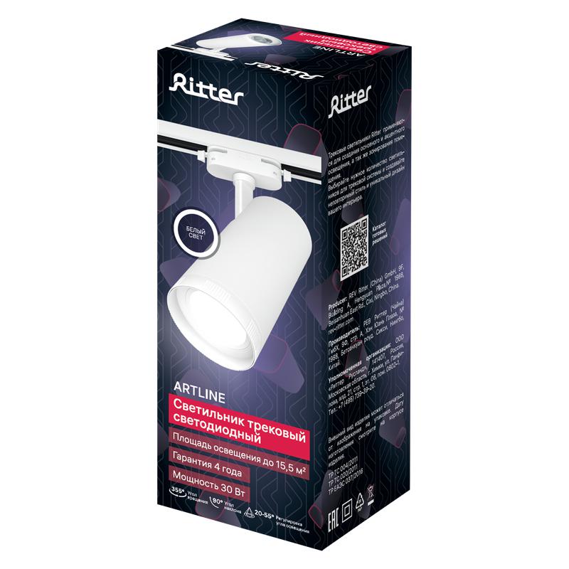 Светильник трековый светодиодный ARTLINE поворотный 80х80х170мм 30Вт 2380Лм 4000К 230В алюм. 15.5кв.м бел. Ritter 59739 5