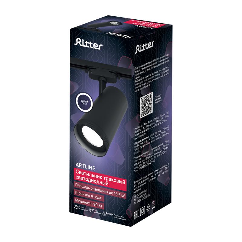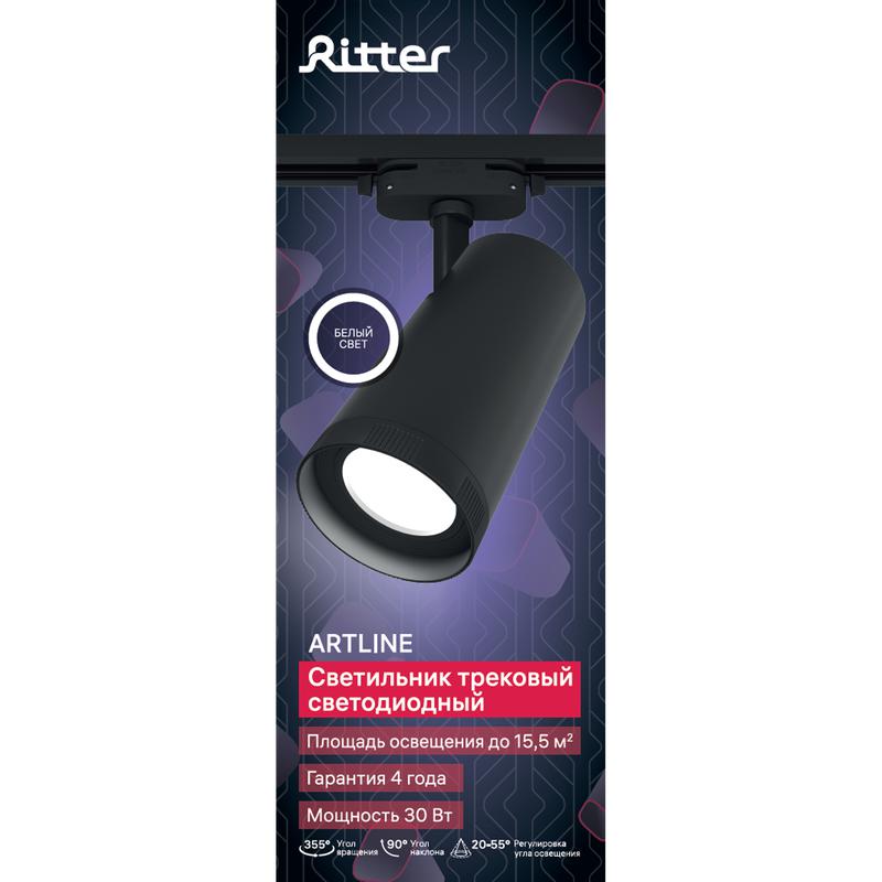 Светильник трековый светодиодный ARTLINE поворотный 80х80х170мм 30Вт 2380Лм 4000К 230В алюм. 15.5кв.м черн. Ritter 59742 5