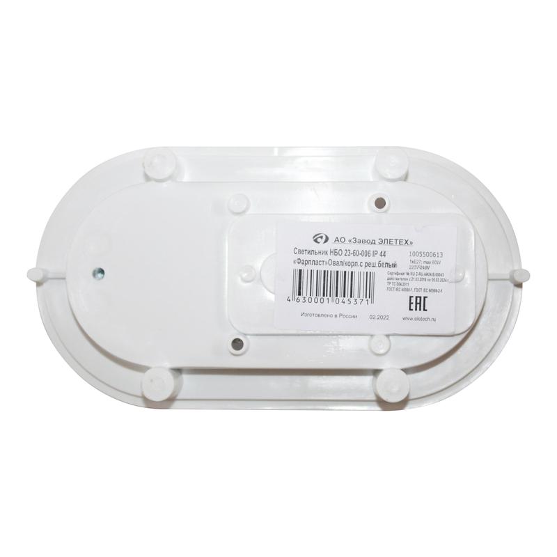 Светильник НБО 23-60-006 "Фарпласт" овал 1х60Вт E27 IP44 корпус с решеткой бел. Элетех 1005500613
