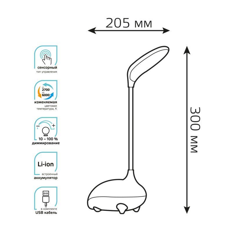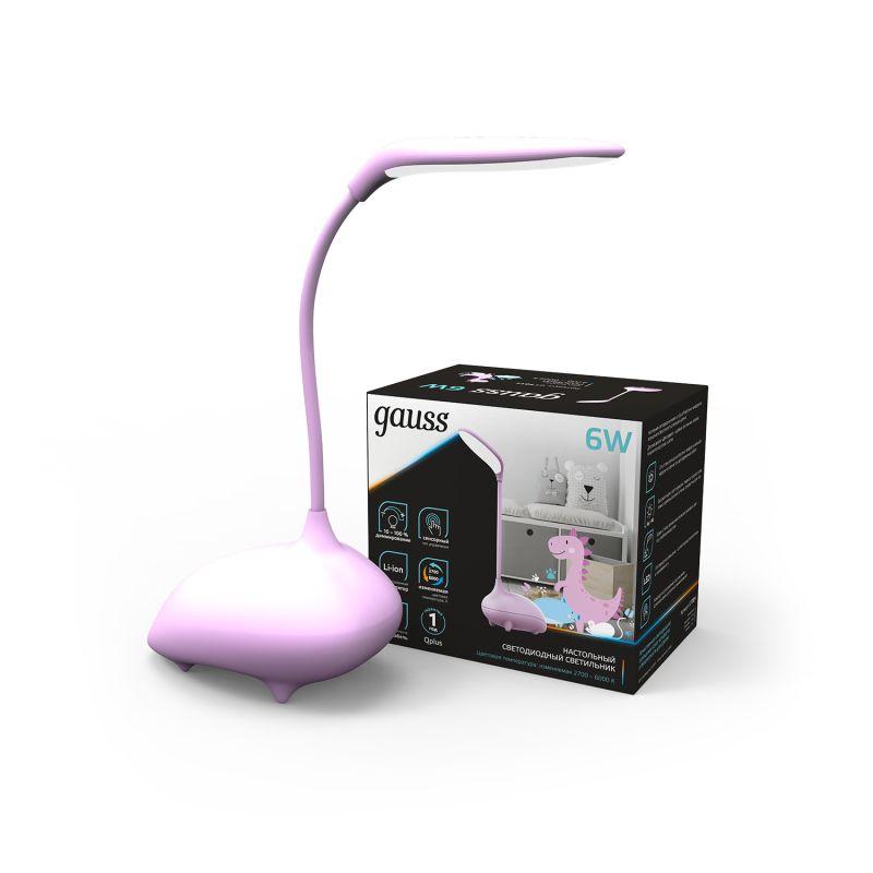 Светильник светодиодный настольный Qplus 6Вт 2700-6000К 330лм 5В аккум. Li-ion 1200мА.ч диммир. детский роз. GAUSS GT7014