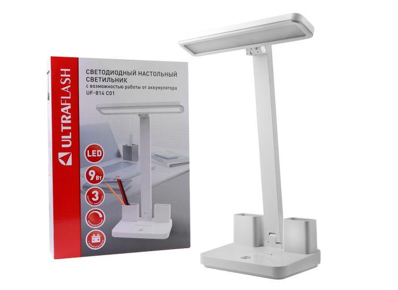 Светильник светодиодный настольный UF-814 C01 9Вт аккум. димм. смена цвет. темп. бел. Ultraflash 15167