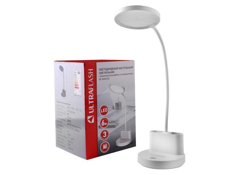 Светильник светодиодный настольный UF-818 C01 6Вт 6000К аккум. 3 ур. яркости) бел. Ultraflash 15162