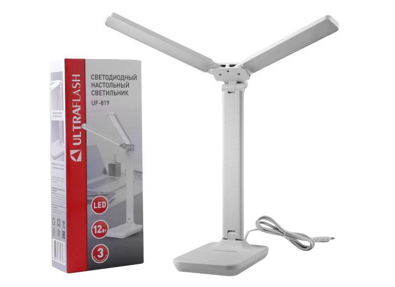 Светильник светодиодный настольный UF-819 C01 12Вт 6000К 3 ур. яркости 2 плафона кожа бел. Ultraflash 15163