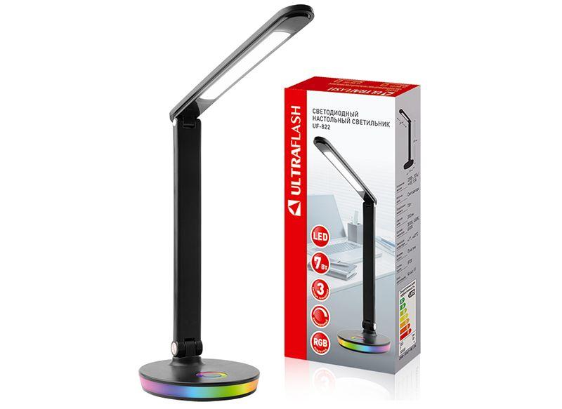 Светильник светодиодный настольный UF-822 C02 7Вт димм. 3 цвет. темп. RGB ночник черн. Ultraflash 15177