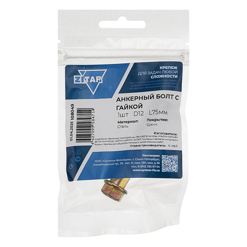 Болт анкерный с гайкой 12х75 Tech-Krep/Zitar 108049