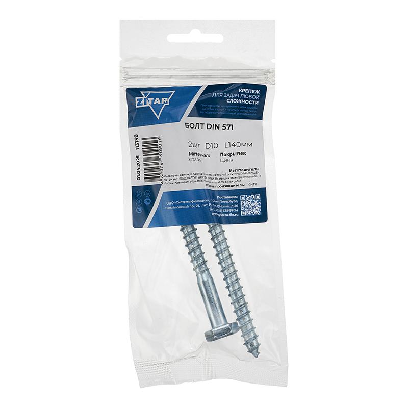 Болт сантехнический 10х140 DIN 571 оцинк. (уп.2шт) Tech-Krep/Zitar 113138