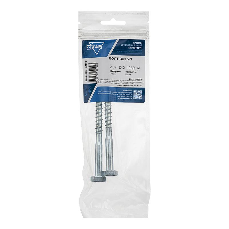 Болт сантехнический 10х160 DIN 571 оцинк. (уп.2шт) Tech-Krep/Zitar 113139