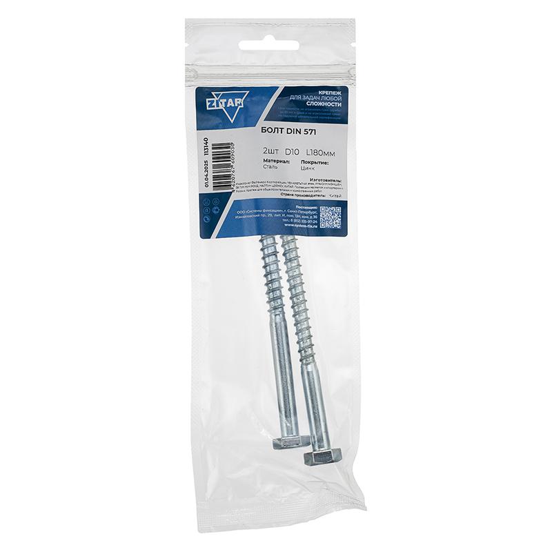Болт сантехнический 10х180 DIN 571 оцинк. (уп.2шт) Tech-Krep/Zitar 113140