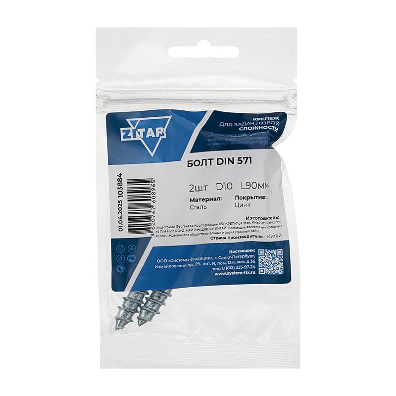 Болт сантехнический 10х90 DIN 571 оцинк. (уп.2шт) Tech-Krep/Zitar 103884