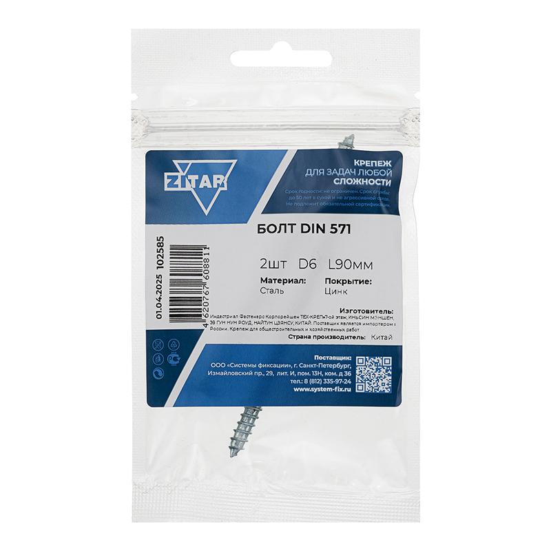 Болт сантехнический 6х90 DIN 571 оцинк. (уп.2шт) Tech-Krep/Zitar 102585