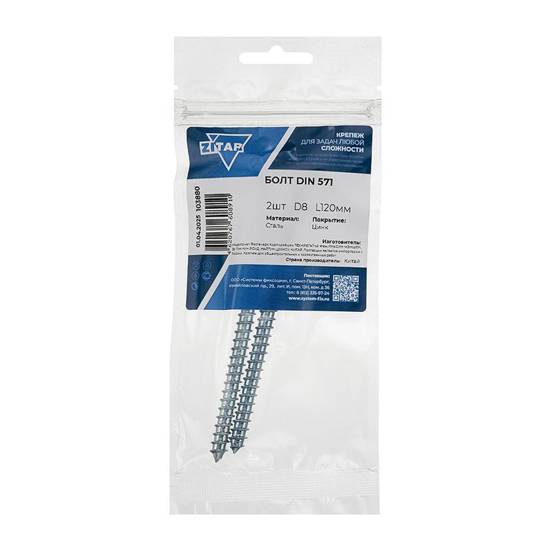 Болт сантехнический 8х120 DIN 571 оцинк. (уп.2шт) Tech-Krep/Zitar 103880