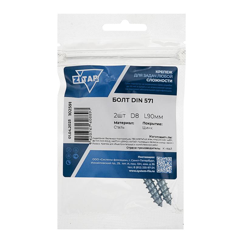 Болт сантехнический 8х90 DIN 571 оцинк. (уп.2шт) Tech-Krep/Zitar 102591