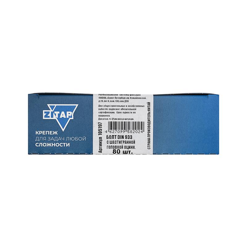 Болт с шестигранной головкой М5х30 DIN 933 оцинк. (уп.80шт) Tech-Krep/Zitar 105197