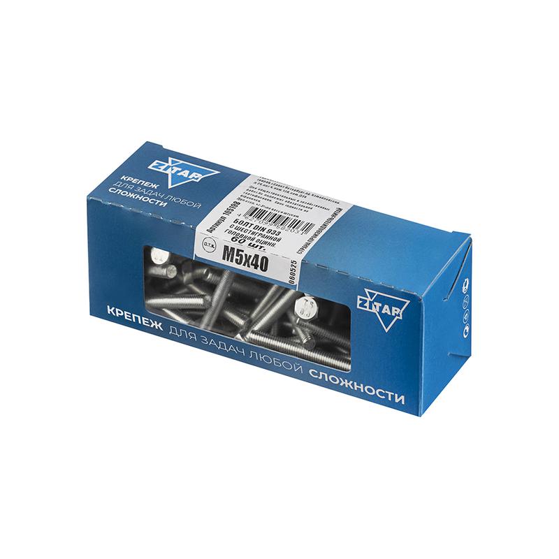 Болт с шестигранной головкой М5х40 DIN 933 оцинк. (уп.60шт) Tech-Krep/Zitar 105198